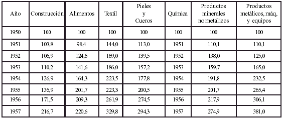 Tabla 2 Crecimiento de algunas ramas industriales 1950-1957