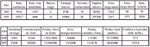 Tabla 3 Comparación de algunos indicadores; años 1945 y 1955
