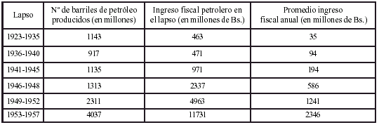 Tabla 5 Producción petrolera e ingreso fiscal 1923-1957