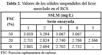 La Tabla 2 presenta los valores de los SSLM obtenidos en el RCS al realizarse cada uno de los ensayos de sedimentabilidad. Con los datos obtenidos a partir de la realización de al menos cuatro (4) series, para cada situación ensayada, se obtuvieron los valores promedio de los parámetros, ya mencionados, usados para evaluar la sedimentación.