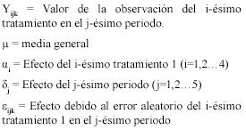 El modelo estadístico general multivariante (Chacín, 1998) aplicado en el experimento se detalla a continuación: