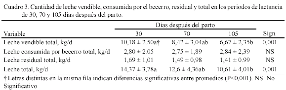 Leche residual de la mañana y LRpm: Leche residual de la tarde y leche residual total (LR = LRam + LRpm). Leche total (LT) correspondió a la sumatoria de los valores parciales de las fracciones evaluadas : LV + CB + LR A