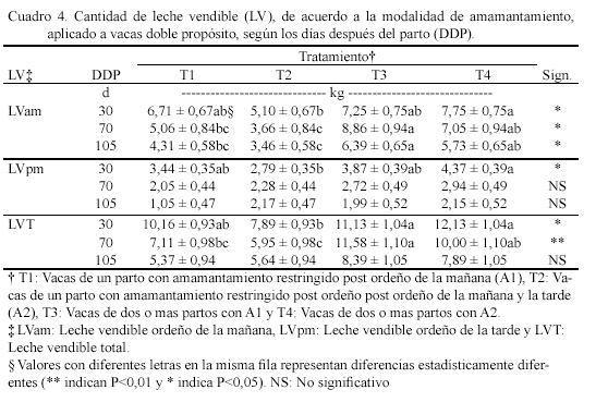 Evaluación de la cantidad de leche vendible y total bajo diferentes modalidades de amamantamiento restringido en vacas doble propósito