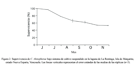 El presente estudio evalúa la influencia de factores bióticos y abióticos en el crecimiento y la supervivencia de C. rhizophorae, bajo condiciones de cultivo suspendido en la Laguna La Restinga, Isla de Margarita, Venezuela.