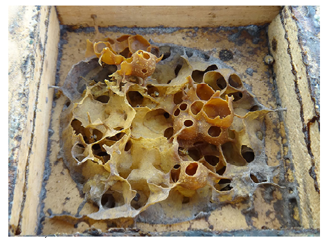 Figura 2. Ánforas de miel de una colonia de conguita (Nannotrigona testaceicornis).