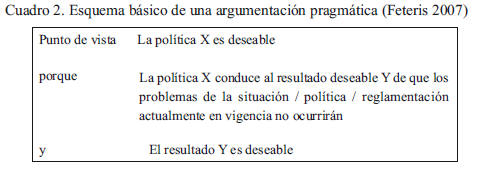Por otro lado, el esquema básico de una argumentación pragmática sería: