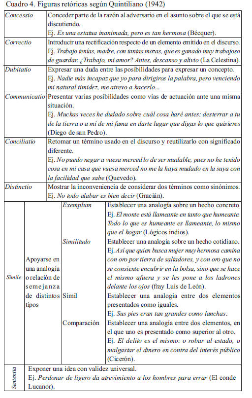 El cuadro 5 resume las descripciones realizadas previamente poniendo en relación el componente dialéctico y el retórico.