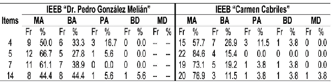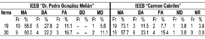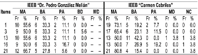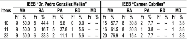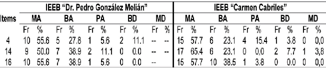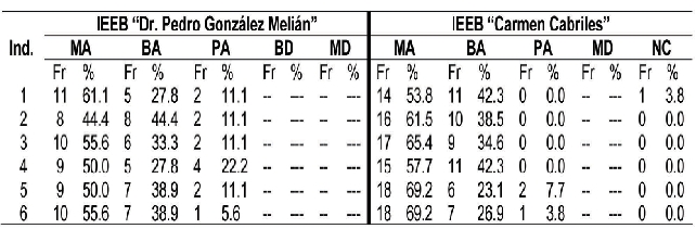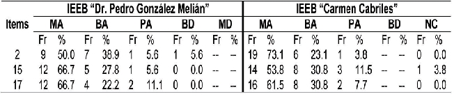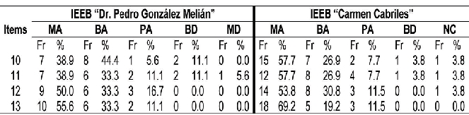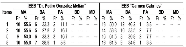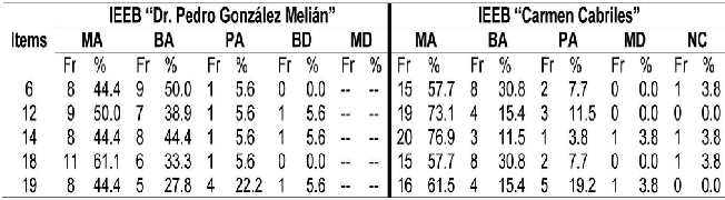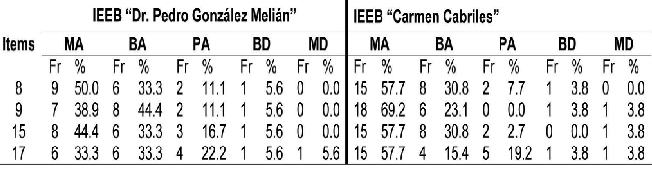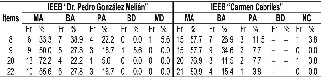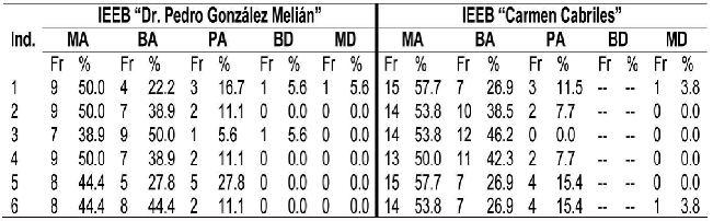 Como se puede apreciar, en ambas instituciones educativas, se plantean la convergencia entre los porcentajes dado al indicador motivación, sin embargo, el IEEB Carmen Cabriles tiene mayor puntuación en estos aspectos.