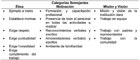 El análisis cualitativo de la información, fortalecen a ambas instituciones en los procesos de dirección y liderazgo, en cuanto que lo mismos responden a una visión conceptual orientada a desarrollar una organización con características de calidad y eficiencia, por cuanto hay un conjunto de elementos que sustancialmente persiguen lograr la estructuración de equipos de trabajo, evaluaciones formativas, compartir la misión y visión, comunicación abierta y relaciones personales horizontales.