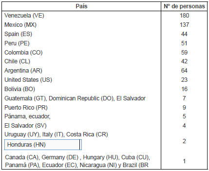 En el siguiente cuadro se presentan los países y personas que visitaron el ambiente Web en siete meses.
