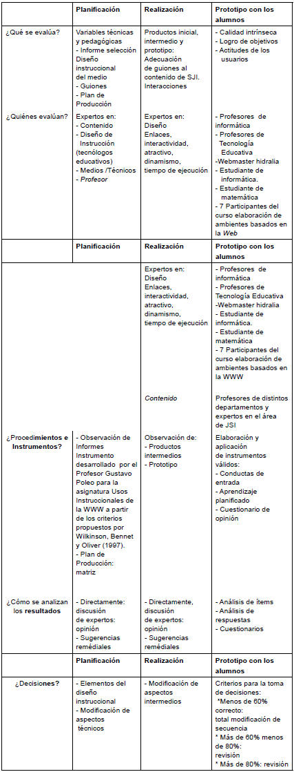 Cuadro 3. Evaluación del prototipo del ambiente web