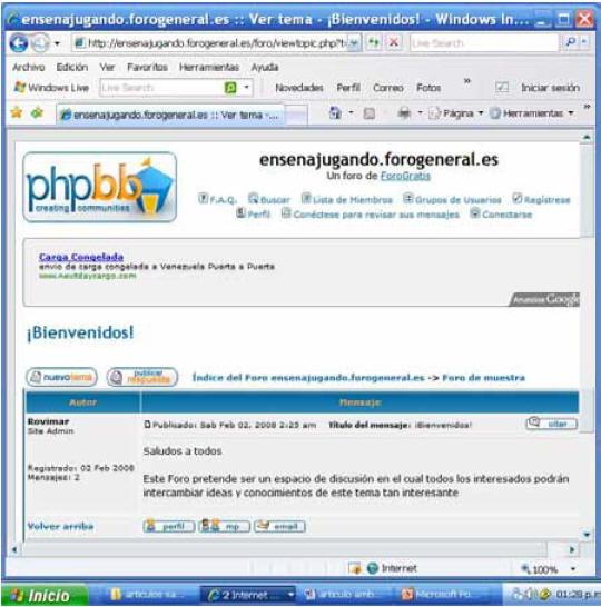 En http://boards.melodysoft.com ofrece la posibilidad de insertar en la página un foro de discusión para mayor comunicación entre los usuarios, de manera que el docente puede dejar información o solicitarla para que los estudiantes intercambien ideas.