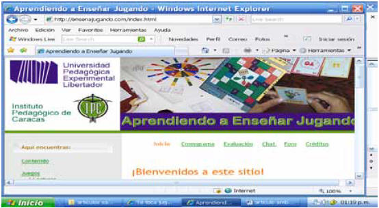 Aprendiendo a enseñar jugando es un ambiente diseñado para proporcionar un aprendizaje a través de las Simulaciones -.Juegos instruccionales basado en la Web, atractivo y manejable, interactivo y comunicacional. Está estructurado en pequeños paquetes, de tal manera que, los usuarios puedan localizarlos de manera fácil y rápidamente. Los estudiantes pueden desplazarse cómodamente entre los distintos paquetes tanto en la misma página Web, o entre esta y otras páginas ya que tiene hipervínculos y enlaces que lo hacen interactivo. Se navega a través de la información, la cual incluye, botones, menús para las lecturas, hipertextos, tiene música que puede ser quitada si así lo desea el autor.