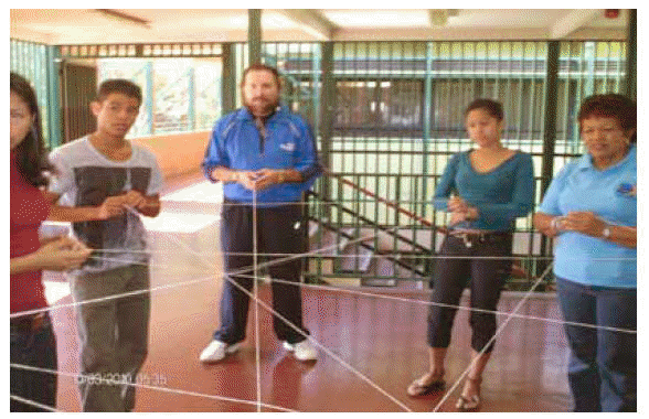 El trabajo se realizó considerando las siguientes fases: FASE I: Actividad de entrada Presentación del facilitador y de los participantes, con la finalidad de establecer empatía y aceptación, para ello se utilizó la técnica de la tela de araña, con la intención de representar opciones tendentes a disminuir el embarazo en los adolescentes, para concluir cada participante indicó cual era la expectativa que tiene sobre la actividad que se va a realizar, las cuales fueron anotadas en el pizarrón, lo que permitió tener un primer registro de la actividad que luego fueron validadas al finalizar, además sirvieron como insumo para su correspondiente categorización utilizando inicialmente los principios propuestos por la Unesco, Delords (1995). En la foto 1, se observa la participación del grupo durante la actividad inicial.