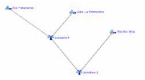 • Modelo de la Cuenca: Según Salgado (2005), en esta etapa se definen los parámetros y datos conectados con elementos hidrológicos, como la cuenca, sub- cuencas, uniones o confluencia de cauces, reservorios, fuentes y derivaciones, en cada uno de ellos se asignan atributos y parámetros. Para efectos de la Cuenca del río Patanemo, se consideró los cauces de las quebradas La Primavera y Santa Rita y el río Patanemo (fig 3).