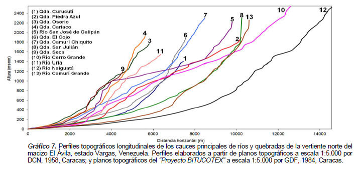 La vertiente septentrional de la serranía del Ávila termina abruptamente hacia el mar en una costa de inmersión. La franja de playa es muy estrecha, al igual que la formación de planicies aluviales, dado el comportamiento hidromorfodinámico torrencial de los ríos y quebradas que se desprenden para dar paso a la formación de abanicos aluviales y explayamientos terminales, que a veces se sobreponen lateralmente de manera coalescente (ver gráfico 3) (Arismendi, 2007).