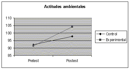 Del análisis cuantitativo de los valores obtenidos en el pretest relativos a la actitud hacia el medio ambiente, se aprecia una homogeneidadad previa entre los grupos evaluados (grupo de control y experimental); si bien, en ambos se obtuvieron valores muy altos que podrían ser debidos al elevado nivel de sensibilización que muestra la población de nuestro país hacia el medio ambiente; aunque también se pone de manifiesto la "función defensiva" que Sarabia (1993) atribuye a las actitudes, en el sentido de evitar la implicación personal y culpar a las instituciones de los problemas de degradación del medio.
