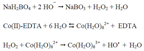 El método emplea una disolución de luminol amortiguada a pH 10, que contiene iones Co(II) acomplejados con el ion etilendiaminotetraacetato (EDTA). Esta disolución se mezcla con otra de perborato de sodio a fin de dar origen a la siguiente secuencia de reacciones: