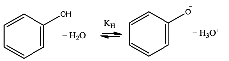 La ionización del fenol puede representarse por medio de la siguiente ecuación: