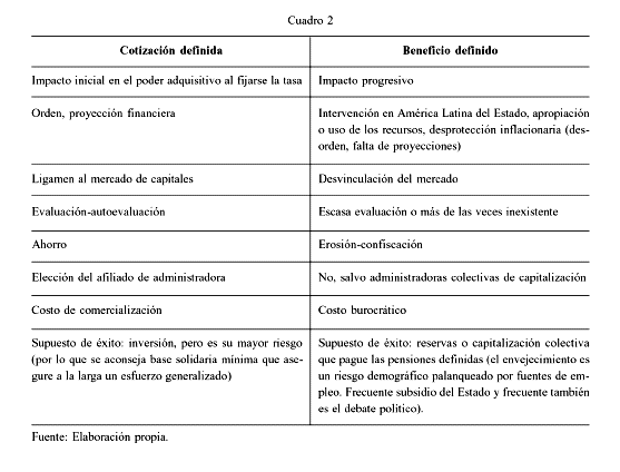 The conclusion is that the different systems have common risks and require similar corrective measures, typical of a State characterized by responsibility, democratic orientation, and social solidarity. Individual capitalization is a potentially appropriate way to generate a pension in a stable environment, but has limited applicability to the special demands of Latin American social security.
