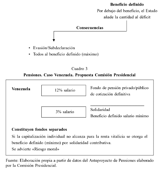 3 El IVSS operando como una administradora de pensiones se ensayó como posibilidad en un intento fallido de reforma previsional en el marco de una ley que habilitaba al Ejecutivo a legislar en 1999. Luego, los resultados de una Comisión Presidencial fueron desestimados por la Comisión Permanente de Desarrollo Social Integral de la Asamblea Nacional, elaborando en septiembre de 2001 un anteproyecto de ley general, aprobado en primera discusión.