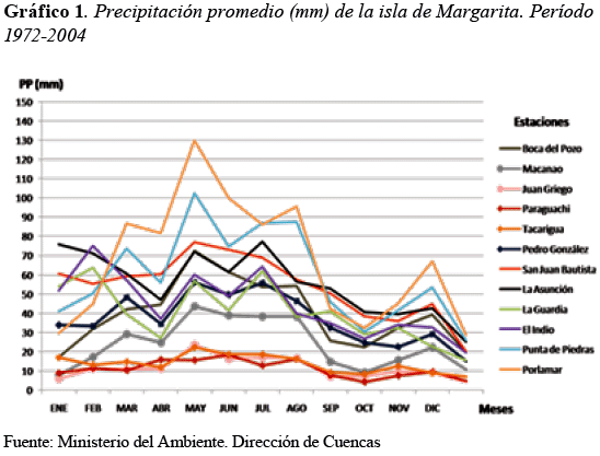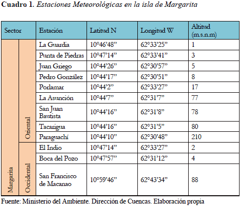 Para el estudio se utilizaron doce estaciones meteorológicas ubicadas en la isla de Margarita (Cuadro 1).
