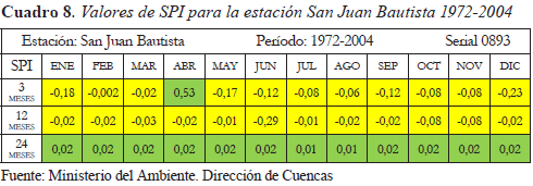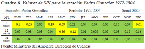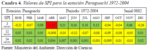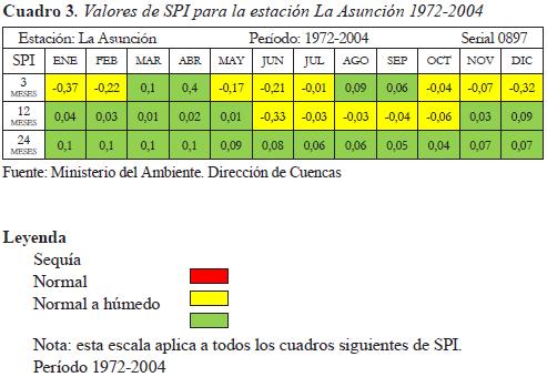 Los valores de SPI son ligados a una clasificación nominal modificada por Skansi et al (2006) de la clasificación original de McKee et al (1993), la cual se muestra en el Cuadro 2.
