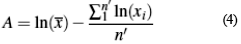 ln(xi): es el logaritmo neperiano de la lluvia acumulada trimestral