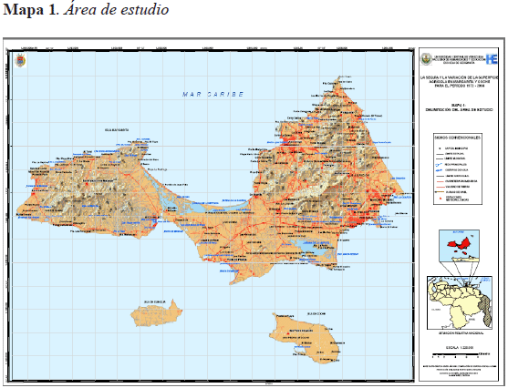 23 cartas topográficas del Instituto Geográfico de Venezuela Simón Bolívar a escala 1:25.000 del estado Nueva Esparta, fechadas de 03-1991, cuyas referencias son: 7449 IV SE, 7449 IV SO, 7449 III NE, 7449 III NO, 7449 III SE, 7449 III SO, 7448 IV NE, 7448 IV NO, 7448 IV SO, 7448 III NO, 7448 III SO, 7349 II SE, 7349 II SO, 7349 II NO, 7349 III SE, 7349 III SO, 7348 I NE, 7348 I NO, 7348 I SE, 7348 I SO, 7348 II NO, 7348 IV NE, 7348 IV NO.