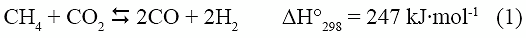 En los últimos años, se ha incrementado el interés en la transformación del gas natural a partir de la reformación con CO2 conocida como reformación seca (ec. 1), ya que produce gas de síntesis con una relación H2/CO ≤ 1 por la eventualidad de la reacción inversa de desplazamiento de gas de agua (inversa de ec. 2), favorable para la síntesis de compuestos oxigenados (Shelley 2006) e hidrocarburos insaturados (Ratnasamy y Wagner 2009). Además, se pueden usar las reservas de gas natural que contienen grandes cantidades de CO2. Finalmente, es la vía principal para transformar estos gases contaminantes disminuyendo sus emisiones al ambiente. Sin embargo, ésta reacción presenta un fuerte carácter endotérmico y una alta energía libre de Gibbs a bajas temperaturas (DGº298 = 174,6 kJ∙mol-1), requiriendo de altas temperaturas para revertir la espontaneidad (DG1073 = -44,76 kJ∙mol-1), condición térmica que promueve simultáneamente la formación de carbón (ec. 3) (Yaw y Saidina 2005).