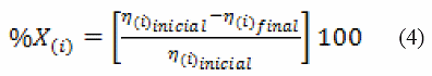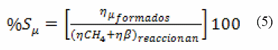Donde: X, S, hinicial y hfinal representan las conversiones, selectividades y moles antes y después de la reacción en estudio, el subíndice i representa el gas a considerar CH4, CO2 y μ son los productos CO e H2 (si μ = CO entonces β = CO2 pero si μ = H2 entonces β = CH4).
