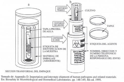 Es ampliamente conocido que este tipo de material debe ser adecuadamente empacado, rotulado, enviado y recibido, siguiendo normas tanto nacionales como internacionales; todo ello para evitar cualquier accidente durante su transporte y recepción. La importación de este tipo de producto (muestras clínicas, agentes etiológicos, vectores de enfermedades de plantas, animales y humanas, incluyendo agentes zoonóticos; material proveniente de manipulaciones genéticas, etc.), así como su posterior transferencia a otros laboratorios, deben ser controlados a través de una rigurosa permisología. El envío de muestras diagnósticas, productos biológicos y agentes etiológicos compromete a cada persona envuelta en el proceso; por lo tanto el material infeccioso que ha sido adecuadamente rotulado, manipulado y empacado, acarrea un menor riesgo de exposición accidental para el personal no perteneciente al laboratorio que entra en contacto con el material en tránsito, desde su lugar de origen, hasta la institución receptora. Debemos recordar que el traslado de especímenes sin rótulo o identificación está terminantemente prohibido.