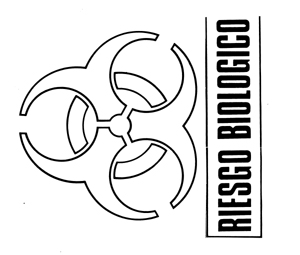 En todo laboratorio microbiológico es obligatoria la utilización del símbolo internacional de "Riesgo Biológico" para indicar la presencia, bien sea actual o potencial, de dicho peligro. Con el citado símbolo (ver figuras 2 y 3), deben se identificados: equipos, recipientes, materiales, laboratorios, áreas con animales de experimentación, etc., que contienen o están contaminados con agentes microbianos viables, que puedan implicar algún tipo de riesgo para el operador y/o entorno.