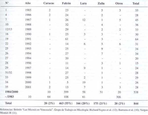 Tabla 1. Cromomicosis casuística en Venezuela.