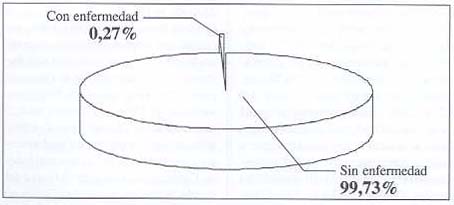 Sólo se encontró un caso de paracoccidioidomicosis enfermedad, lo que representa el 0,27% de la muestra estudiada (gráfico 2).
