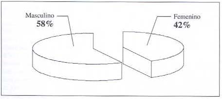 El 58% de los individuos con reactores positivos a la paracoccidioidina pertenecía al sexo masculino y el 42% al femenino (gráfico 4).