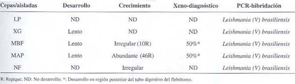 Cuadro 1. Características de las cepas aisladas de pacientes con leishmaniasis cutáneas localizadas, cultivadas para preparación de antígenos.
