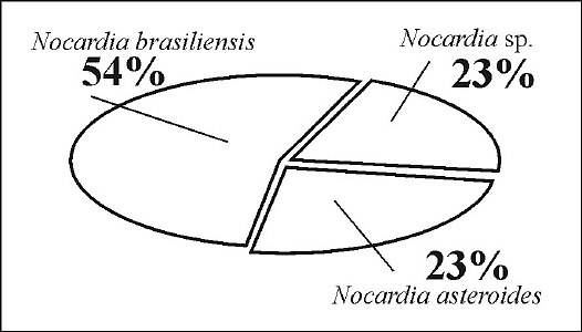 Figura 1. Especies de nocardia aisladas, indicadas por su porcentaje.