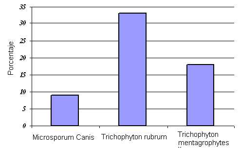 The dermatophytoses constitutes one of the main causes of dermatological consulting. In our laboratory, 200 patients coming from the Dermatology Consulting in the Investigation Centre “José Witremundo Torrealba”, Los Andes University, Trujillo state, Venezuela, were received presenting different affections in the skin. The major number of them were women (99=49,5%) and men (81=40,5%), while the children represented the smallest percentage (20=10%). 60 strains of dermatophytes were isolated and classified in 3 different species: Trichophyton rubrum (33), Trichophyton mentagrophytes (18) and Microsporum canis (09). Our results agree with the findings of other investigators in different geographical areas, and it is assumed that these three species represent the main causal agents of dermatophytoses.