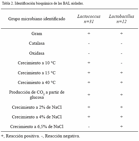 La metodología utilizada en este trabajo indicó que la flora láctica está formada principalmente por los géneros Lactococcus y Lactobacillus, resultados relevantes debido a la gran actividad probiótica y antimicrobiana de las BAL contra bacterias patógenas, contribuyendo a la obtención de un producto artesanal de mejor calidad.