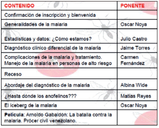 La Dra. Belkisyolé Alarcón de Noya, directora del IMT, realizó la invitación vía correo electrónico, convocando a participar y difundir la información por las redes sociales. Explicó que la motivación para realizar este evento, en medio de una crisis social y política, se debe a que el país enfrenta actualmente una epidemia de malaria, por lo que es fundamental entender la epidemiología y los cambios ecológicos que permiten la persistencia del mosquito transmisor, a fin de aconsejar y prevenir a los grupos susceptibles y comunidades en riesgo.