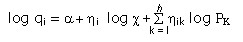 en donde qi representaba la cantidad demandada del bien i; pi el precio del i-ésimo bien; x representaba el gasto total; hi la elasticidad del gasto total y hik la elasticidad (precio) cruzada del k-ésimo precio sobre la i-ésima demanda. Utilizando este modelo estimó las funciones de demanda para 48 categorías de bienes de consumo alimentario, para el periodo comprendido entre 1920 y 1938, a partir de datos de encuestas de hogares del Reino Unido.