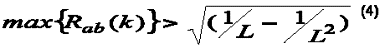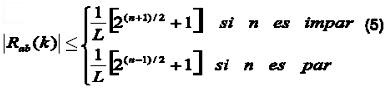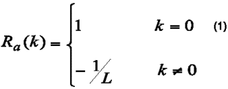 Donde k vuelve a ser el desplazamiento relativo para el que se evalúa la autocorrelación parcial, L es el período de la secuencia y R(k) la autocorrelación global de la secuencia para el desplazamiento relativo de k chips.