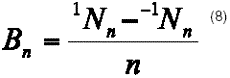 El balance parcial BN de un segmento de código se define de la misma manera que en (7), sólo que 1NN y -1NN son respectivamente los números de bits que valen sólo 1 y 1 en el segmento de código. En este trabajo se utiliza el balance parcial normalizado Bn que se escribe como: