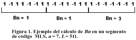Cuando se dispersa con códigos para en DS con n<L los bits de información son multiplicados en general por cualquier segmento del código. Por lo tanto, para evaluar el balance parcial Bn es necesario comparar el número de 1 y -1 utilizando la expresión (8) en todos los segmentos de longitud n del código. Ver la Figura 1.