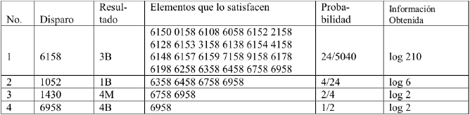 3) Calcular la entropía de los posibles 5040 disparos tomando como base el conjunto de valores resultantes del paso 1. Elegir como próximo disparo el que posea mayor entropía. En caso que se tengan 2 disparos con igual entropía máxima, aplicar algún criterio adicional que permita seleccionar cuál de ellos resulta más conveniente para lograr el objetivo propuesto.