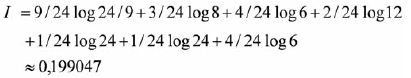Puede calcularse, de forma similar, la información asociada al disparo 0158 que es igual a 0,118813 y que, como era esperado, es menor que 0,199047. Nótese que se ha calculado la información asociada al conjunto de mensajes posibles de originarse por un disparo a partir de la fórmula: