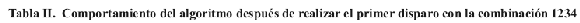 Resulta interesante analizar la respuesta asociada a la primera jugada, esto es, qué genera el algoritmo como segundo disparo. La Tabla II resume este hecho.