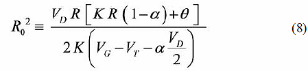 Rm se define como Rm = Rch + R donde Rch es la resistencia del canal, y R es la resistencia parasita de drenador-surtidor. Mientras que el valor de Rch es proporcional al largo metalúrgico de canal Lm, la resistencia parasita R es independiente del mismo y por ende su comportamiento teórico esperado es el de tendencia hacia un valor constante para todo Lm. Bajo esta premisa se infiere que para transistores de canal largo el efecto de la resistencia del canal Rch puede enmascarar el efecto de la resistencia parasita R, dificultando su extracción efectiva.Para superar esta dificultad, recientemente se presento como alternativa de extracción [11] suponer