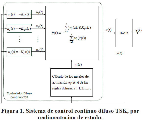 En la Fig. 1 se puede observar también el diagrama de un sistema de control continuo difuso TSK por realimentación de estado.